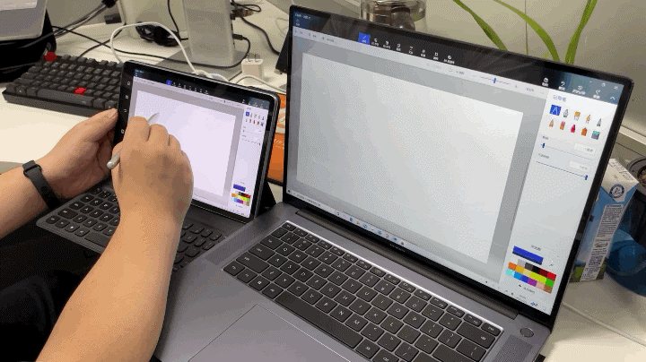 在共享模式下,文档可在 PC、平板间跨设备、跨屏幕、跨系统双向拖拽,目前支持的内容包含图片、视频、音频、文档、压缩包、应用安装包、文本等等。平板也可以使用 PC 的键盘和鼠标。