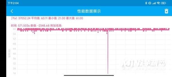 然后是《和平精英》,《和平精英》尚未适配 90 帧模式,因此在 HDR 高清加 60 帧模式下进行测试。在帧数图中可以看出,绝大多数时间都是顶着 60 帧跑的,游戏体验很顺畅,30 分钟游戏后平均帧率为 60.1 帧。